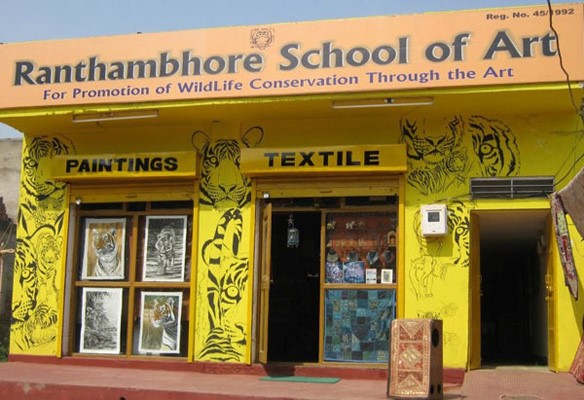 The school is run by senior artists who train the younger generation and give them a livelihood and a platform to showcase their work. There is some time the artists spend at work. The school is one of the best – best kept secrets of Ranthambore / Sawai Madhopu.The name is very pompous. It is exclusively for the art lovers. It’s basically a great workshop room with paintings in different media with the tiger theme. The artists can give you a little demo to explain their skills. They are really good. Art from 2000 to 25000 Rs rs are for sale. The Charcoal paintings are treat to watch. one can understand different dimensions of art and color … guided by a master craftsman and a wonderful human.