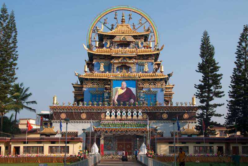 Located amidst the sandal groves a few hours from Bangalore and Mysore, in Karnataka state, South India, Namdroling was established by His Holiness Pema Norbu Rinpoche shortly after he came to India from Tibet. The Dalai Lama consecrated the spot and bequeathed the name “Namdroling Monastery.” Namdroling Monastery also known as the Golden temple in a Tibetian settlement near Kushalnagar Coorg.It’s a lovely place, huge temple complex. The temple houses three golden statues of Buddha, Padmasambhava, and Amitayus. They should have a guide or someone who could give the visitors a proper tour of the Monastery and Tibet culture. The monastery was established as learning centre after heavy rains in north. The huge statues of spiritual leaders and Gautam Buddha stand tall in a large monastery with painted walls, and windows.